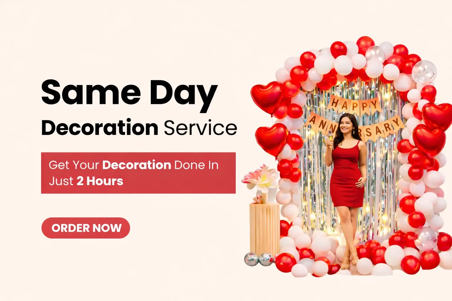 Don’t worry! Decoration Managements provides the best room balloon decoration for birthdays, anniversaries, and surprise parties. We are a popular, top-notch company providing professional-level decoration for every occasion.